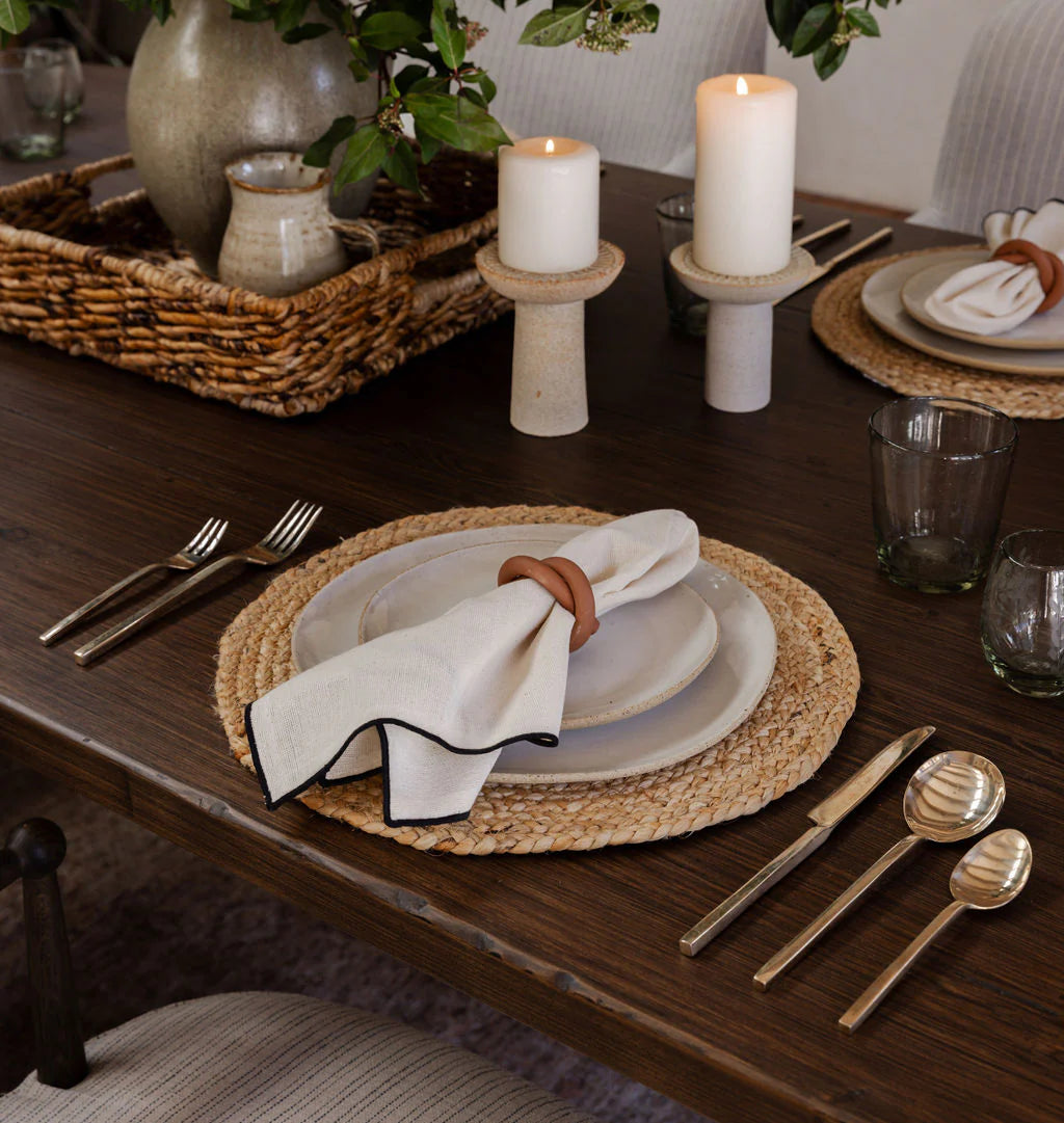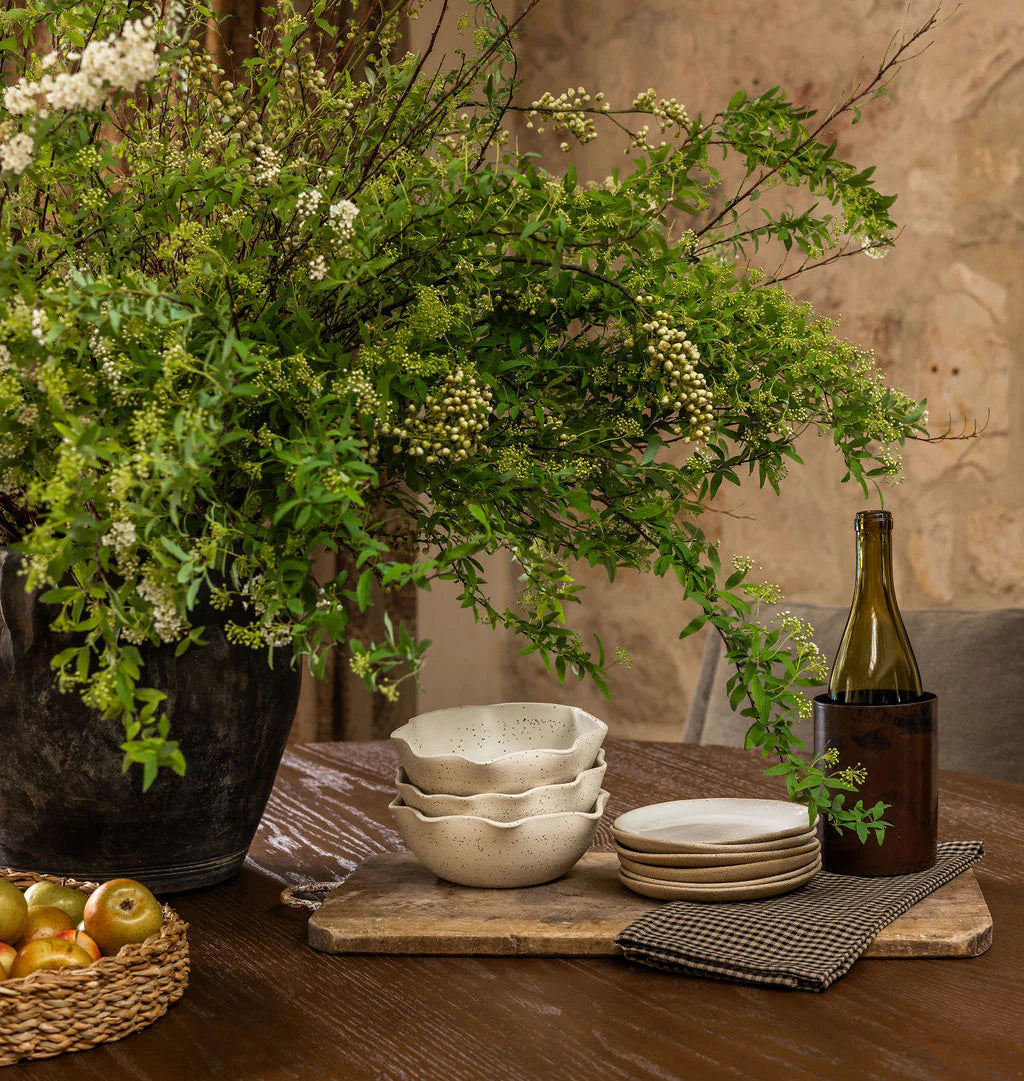 Small-batch made, the Lille Dinnerware will elevate any dining experience. Inspired by the shapes and tones of the natural world, each piece features warm hues with a raw exterior and a glazed porcelain interior, a juxtaposition of textures that is sure to add both interest and intrigue to your table setting.